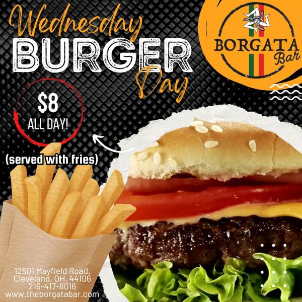 Wednesdays at Borgata Bar are all about the classics. Join us for Burger Day, where you can enjoy a delicious, freshly prepared burger served with crispy fries for just $8 all day long.